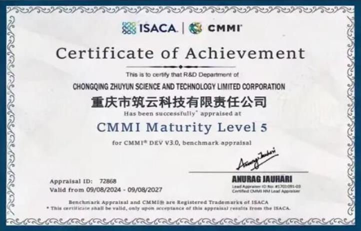 此次斩获CMMI-5级评估证书,标志着筑云科技在项目研发能力、服务交付、项目管理等方面都达到了国际先进水平。