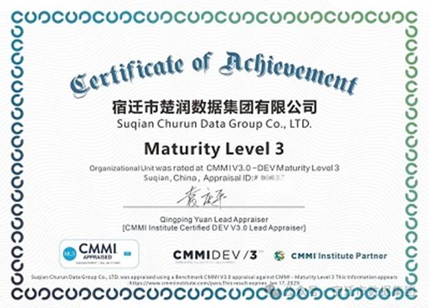 楚润数据集团通过CMMI3级认证,研发创新能力获国际权威认证!
