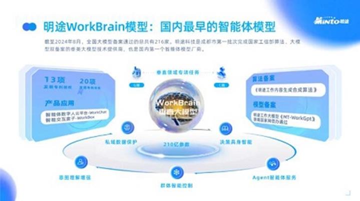 创新驱动引领企业发展。明途科技成立十年来,专注于目标管理、目标数据采集分析、工作大脑垂类模型训练。明途科技自研的WorkBrain模型,作为首个基于“目标、项目、绩效”等数据进行训练的智能体综合应用模型,以及首个将群体智能技术用于产业升级的模型,在管理软件转向人工智能转型的浪潮中,不仅在国内占据绝对领先地位,更在国际舞台上展现出非凡实力。