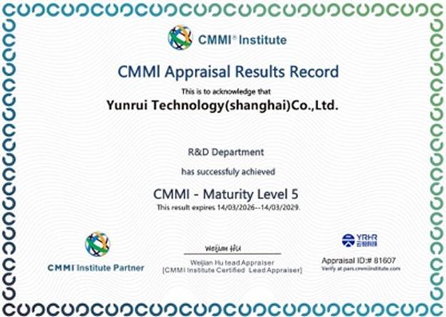 近日,云锐科技YRHR正式通过CMMI5(能力成熟度模型集成五级)认证。该认证是软件与 IT 服务领域全球公认的最高级别认证,全球100+国家认可,是企业研发管理能力、质量与持续优化能力的顶级权威背书。