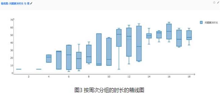 可以采用箱线图法,也可以采用控制图法。由于问题的解决是一个时间跨度,不好确定是以报告时间还是以结束时间来排序,所以直接就采用箱线图来分析。