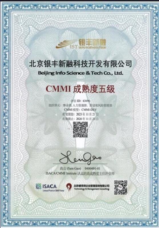 近日,银丰新融顺利通过全球软件领域CMMI V2.0成熟度五级(简称CMMI5)复评认证,自2021年1月首次通过后再次荣获CMMI5级证书,标志着银丰新融在软件研发和项目管理方面持续保持国际领先水平。