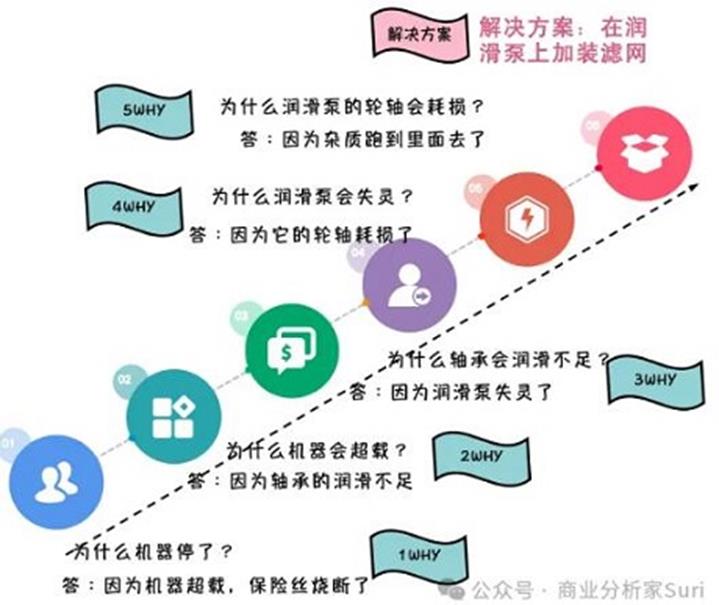 “丰田的机器停了”为例,看看如何利用5why分析法定位根本原因。