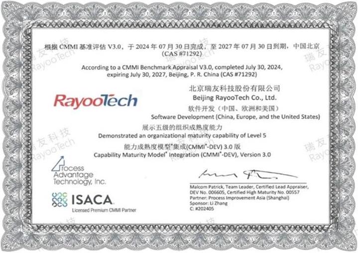 2024年7月30日,在国际软件领域权威认证机构的严格审核与评估下,瑞友科技再次顺利通过CMMI3.0 五级认证复评,荣获国际认可的最高标准软件能力成熟度证书,成为全球首批通过CMMI3.0五级评估的企业。这标志着瑞友科技在软件研发工程能力、项目管理过程管理能力以及持续交付等方面的能力,持续达到全球领先水平,得到国际成熟度最高标准的持续认可。