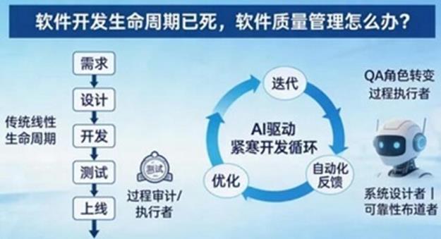 总而言之,软件生命周期并未消亡,而是进化成了一种更紧密、更生物化的形态。 软件质量管理的“体” (经典流程和阶段)或许在消融,但其“魂” (保障最终交付价值的可靠性)比以往任何时候都更重要。QA从业者的挑战在于,必须亲手打破自己熟悉的“旧世界”的墙,在“意图-构建-观察”这个充满活力的“新世界”里,找到自己作为系统诊断者、质量策略家和可靠性文化奠基人的新坐标。