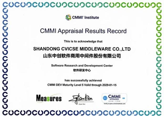 CMMI DEV 5级资质:软件开发过程管理达到国际先进水平。